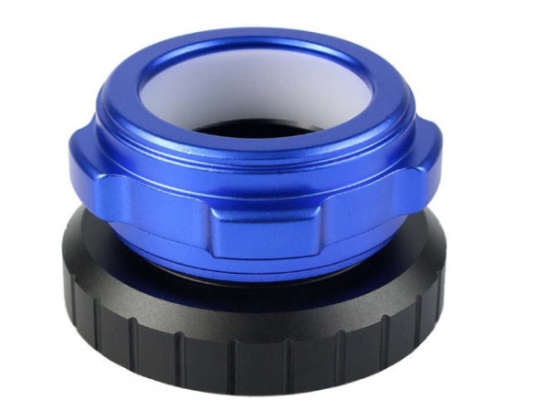 Зажим SVBONY ClickLock — аксессуар для быстрой замены окуляров. Накручивается на T-резьбу телескопа или линзы Барлоу. Шайба с противоположной стороны вращается по резьбе, зажимая фторопластовое кольцо, которое надежно фиксирует окуляр. Поворот синей шайбы против часовой стрелки ослабляет фиксацию, позволяя заменить окуляр.