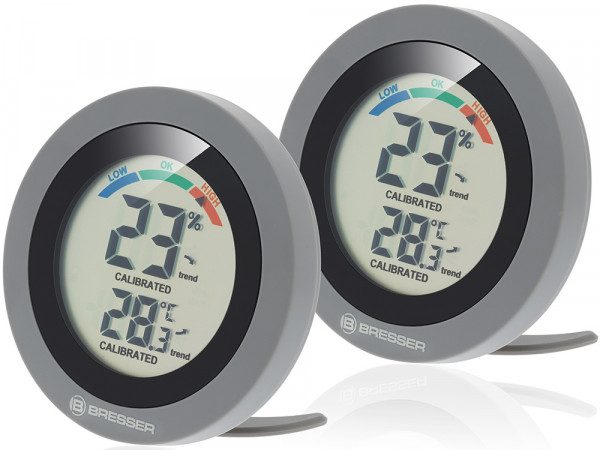 Перед вами набор из двух комнатных термогигрометров Bresser Circuiti Neo. Это компактные и очень простые в использовании приборы, которые позволяют следить за изменениями температуры и влажности воздуха в помещении. Также у них есть шкала уровня общего комфорта, которая сигнализирует о том, насколько благоприятны условия в доме.Метеостанции можно разместить в разных комнатах – так можно будет следить за микроклиматом сразу в двух местах. Приборы можно повесить на стену или поставить на специальную подставку. Для питания нужны батарейки, которые приобретаются отдельно.Основные особенности:Два метеоприбора в одном набореФункции: термометр и гигрометрОценка уровня общего комфортаНастольное или настенное размещениеПитание от батареекКомплектация:Метеостанция – 2 шт.Инструкция по эксплуатации и гарантийный талонТехнические характеристикиМесто использованиявнутри помещенияТипметеостанцияВстроенные функциигигрометр, термометрПо устройствунастольная, настенная, цифровая, беспроводнаяПо назначениюдомашняяГигрометр (влажность воздуха)Единицы измерения% (RH)Термометр (температура)Единицы измерения°F, °CОбщие характеристикиТип экранамонохромныйКоличество экранов1Источник питаниябатарейки типа АА – 2 шт. (нет в комплекте)Оценка уровня общего комфортаестьПрогноз погодыесть