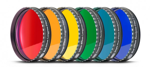 Набор из шести цветных фильтров Baader Planetariumдля наблюдений Луны и планет. Подходят для окуляров с диаметром посадочной втулки 2”. Цветные фильтры это необходимый инструмент в арсенале любого наблюдателя Луны и планет, потому что фильтры позволяют увидеть те детали поверхности при наблюдениях, которые часто не видны без их применения.Фильтры позволяют решить две основные проблемы при наблюдениях:уменьшение излишней яркостиповышение контрастностиВ комплекте:Красный фильтр (610 нм)Оранжевый фильтр (570 нм)Желтый фильтр (500 нм)Зеленый фильтр (495 нм)Голубой фильтр (435 нм)Синий фильтр (435 нм)
