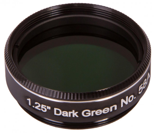 Темно-зеленый светофильтр Explore Scientific увеличивает контраст между красными и синими областями на планетных дисках. Эта особенность наиболее востребована при изучении облачных структур на газовых планетах, например, Юпитере и Сатурне. Наилучший результат светофильтр обеспечит на телескопе с апертурой свыше 200 мм.Светофильтры Explore Scientific – это простой и доступный способ расширить границы своих астронаблюдений. Они разработаны специально для изучения планет и позволяют увидеть больше деталей на их дисках. Светофильтры повышают контраст между разноосвещенными областями, увеличивают яркость темных структур, делают картинку более читаемой и ясной. Рекомендуем всем требовательным астрономам.Основные особенности:Светофильтр сделан из высококачественного оптического стеклаОптические поверхности параллельны друг другу и защищены светоотражающими покрытиямиКорпус изготовлен из анодированного алюминия черного цветаРезьба находится по обеим сторонам фильтраМожно совмещать с другими фильтрами Explore ScientificПосадочный диаметр – 1,25″В комплекте индивидуальный пластиковый кейс для хранения