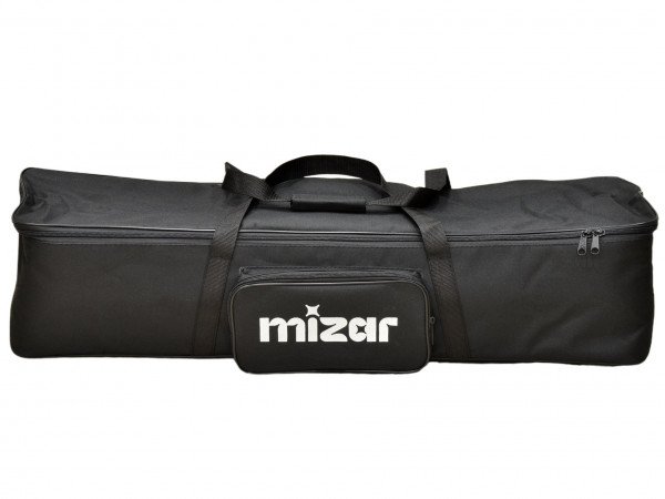 Сумка для телескопаMizar Mini (Мицар Мини)идеально подходит для небольших телескопов, для которых стандартные астросумки слишком велики. Оптимизирована по размерам под азимутальные модели начального уровня (AZ-1/AZ-2, Infinity, AstroMaster LT и аналоги). Компактная, но продуманная конструкция позволяет удобно хранить и переносить все необходимое.Съемная перегородка разделяет сумку на два отсека: для трубы телескопа и штатива. Фиксация ремешками с липучками предотвращает смещение оборудования при переноске. Для хранения полочки штатива выделен внутренний карман (20×20×2,5 см). Внешний отсек на молнии (26×14×3 см) подходит для окуляров, фильтров и мелких аксессуаров.Сумка сделана из ткани Оксфорд устойчивой к износу и влаге. Стенки и дно усилены ПВХ-подкладкой 8 мм, которая поддерживает форму и защищает от ударов. К бокам пришиты нейлоновые лямки, благодаря которым сумку удобно носить в руке.Совместимость:Meade Infinity 70 mmLevenhuk Skyline BASE 70TSky-Watcher BK 767AZ1Sky-Watcher BK 707AZ2Celestron AstroMaster LT 76 AZCelestron AstroMaster LT 70 AZАналогичные телескопы с габаритами до 86×24×18 смMizar Mini — идеальный вариант для выездных наблюдений, хранения и транспортировки!