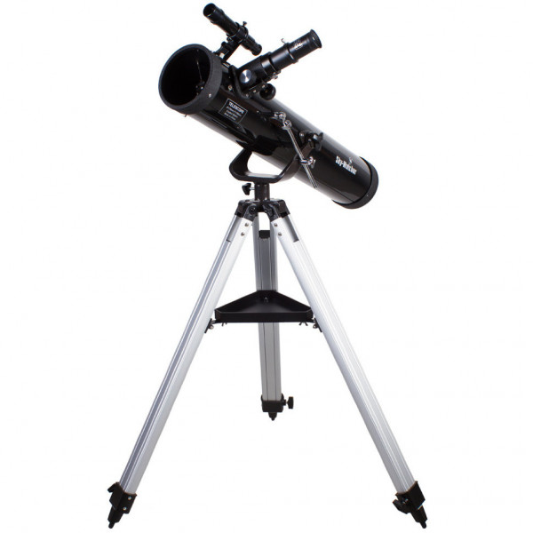Телескоп Sky-Watcher BK 767AZ1 прекрасно подходит для изучения ночного неба. Данная модель отличается качественной оптикой и надежной конструкцией. Благодаря простому управлению Sky-Watcher BK 767AZ1 станет оптимальным выбором для начинающих любителей астрономии. Телескоп оптимален для загородных наблюдений, однако его можно использовать и в городе.ОптикаДанная модель представляет собой зеркальный телескоп, поэтому картинка получается яркой и полностью свободной от хроматических аберраций.В комплект входят два окуляра системы Кельнера. Начинать наблюдения лучше с окуляра с фокусным расстоянием 25 мм, так как он имеет более широкое поле зрения и позволяет охватить взглядом большое пространство. Окуляр 10 мм дает большее увеличение и предназначен для детального изучения космических объектов.МонтировкаТруба устанавливается на азимутальную монтировку. Алюминиевая тренога обеспечивает стабильное положение конструкции. Высота ножек регулируется. Тренога снабжена лотком для аксессуаров.Комплект поставки:Труба телескопаМонтировка азимутальная AZ1Тренога с лотком для аксессуаровИскатель оптический 6х24Окуляры Super 10 и 25 мм, 1,25″Линза Барлоу 2xИнструкция по эксплуатации и гарантийный талон
