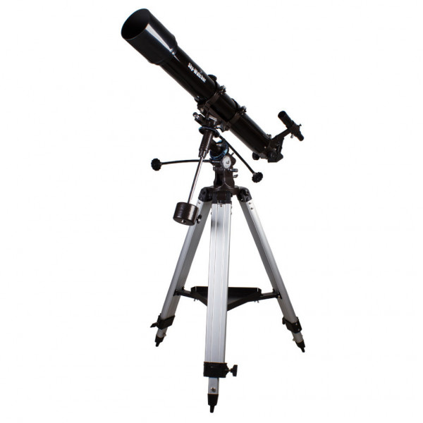 Ахроматический рефракторSky-Watcher BK 909EQ2создан для изучения Луны, планет и других объектов Солнечной системы. Кроме того, его можно использовать для наблюдения некоторых объектов дальнего космоса, например галактик, туманностей и звездных скоплений. Данная модель отличается качественной оптикой и надежной механикой. Оптическая труба устанавливается на экваториальную монтировку EQ2.ОптикаАхроматический объектив формирует контрастное изображение с высокой детализацией. Хроматические аберрации сведены к минимуму. На линзы нанесено многослойное просветляющее покрытие.В комплект входят окуляры 25 мм и 10 мм. Обзорные наблюдения и наведение на объекты лучше проводить с помощью длиннофокусного окуляра. Окуляр с меньшим фокусным расстоянием используется для более детального изучения небесных тел.МонтировкаЭкваториальная монтировка EQ2 позволяет с высокой точностью компенсировать суточное вращение астрономических объектов. Механизмы тонких движений по обеим осям позволяют перемещать оптическую трубу без рывков. Для астрофотографии монтировку можно дополнить моторным приводом (приобретается отдельно).Легкая и прочная алюминиевая тренога регулируется по высоте. Тренога снабжена лотком для аксессуаров.Комплектация:Труба телескопаМонтировка экваториальная EQ2Тренога с лотком для аксессуаровИскатель оптический 6×30Окуляры Super 10 и 25 мм, 1,25″Диагональное зеркало 90°Инструкция по эксплуатации и гарантийный талон